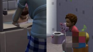 おまるの部屋からのぞくと、またバニバニを叩いているショウゴが見えました。