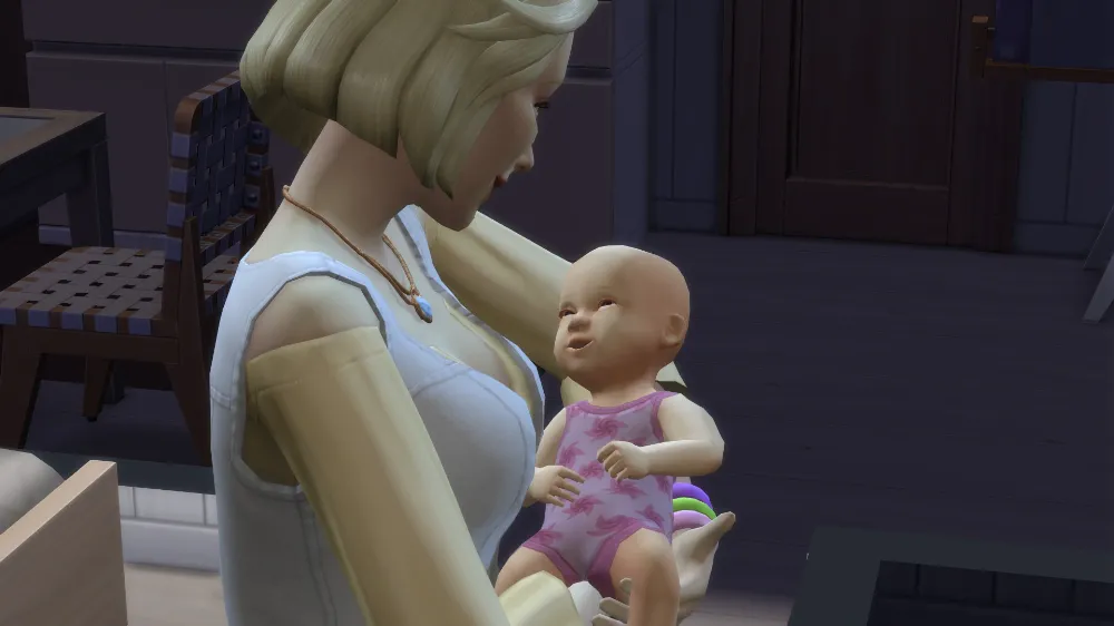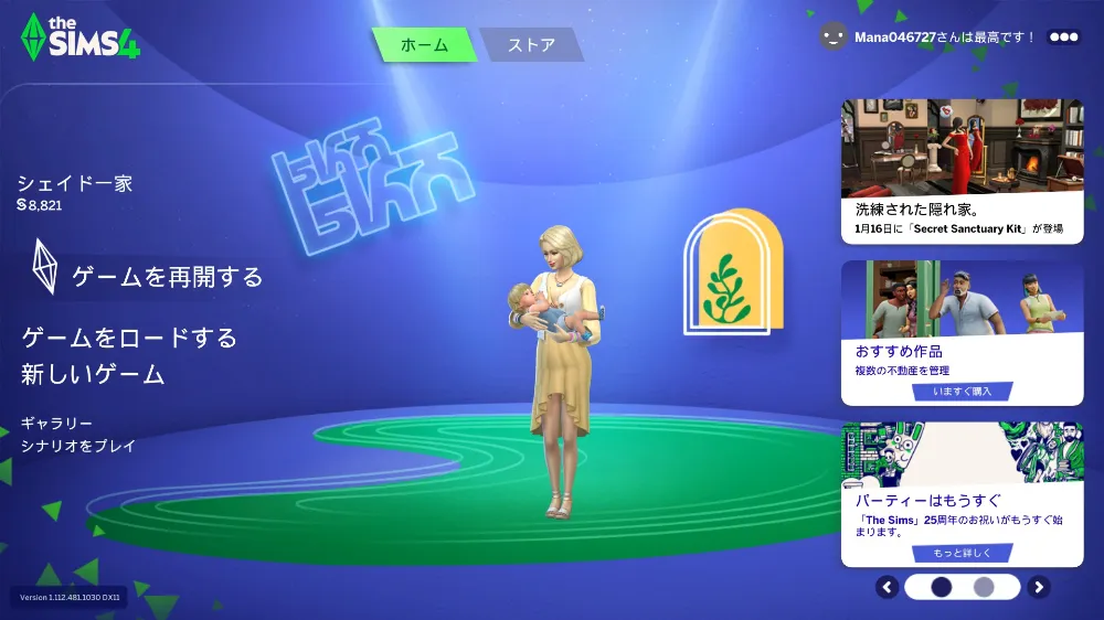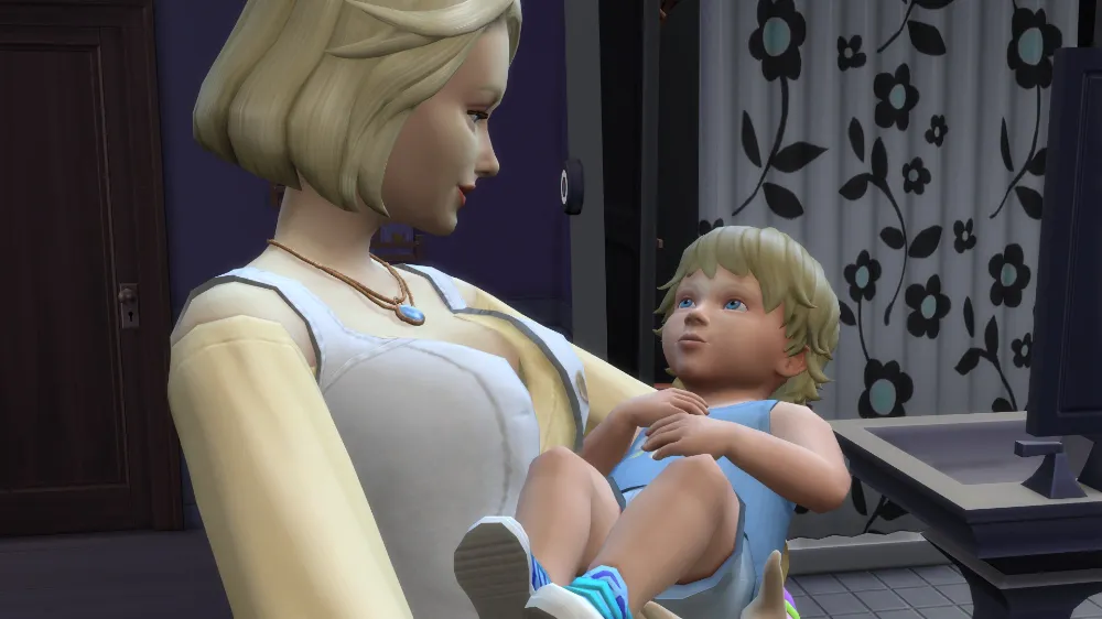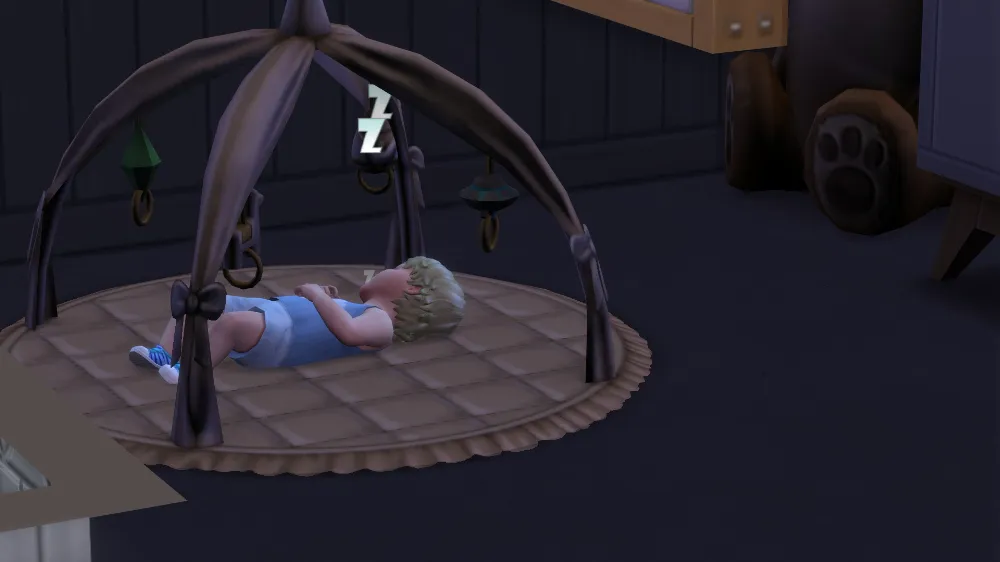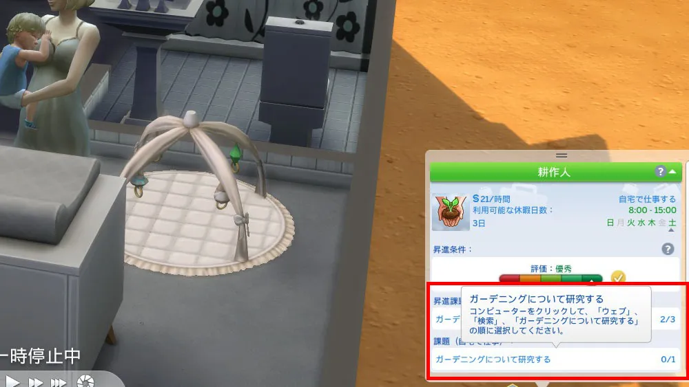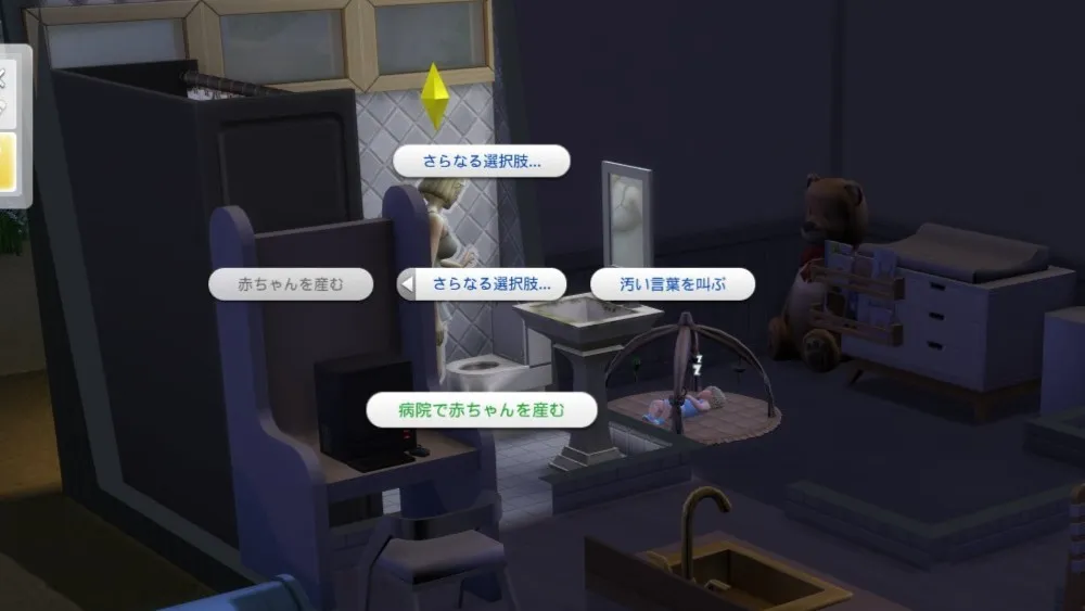 概してシムはパソコンが大好きで、何をおいてもパソコンを触ろうとするので、もう少しマナちゃんの子育てスキルが上がるまでは封印しておこうと思っています。