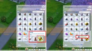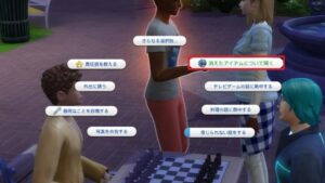 操作している以外のシム(同世帯のシムも可)をクリックし、「消えたアイテムについて聞く」を選択します。