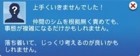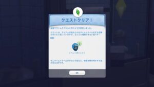 これを3人のシムに対して繰り返すとクエストはクリアとなります。