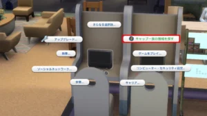 コンピューターをクリックして、「キャップ一族の情報を探す」をクリックします。行動が終了すると(所要時間約1分)クエストはクリアとなります。